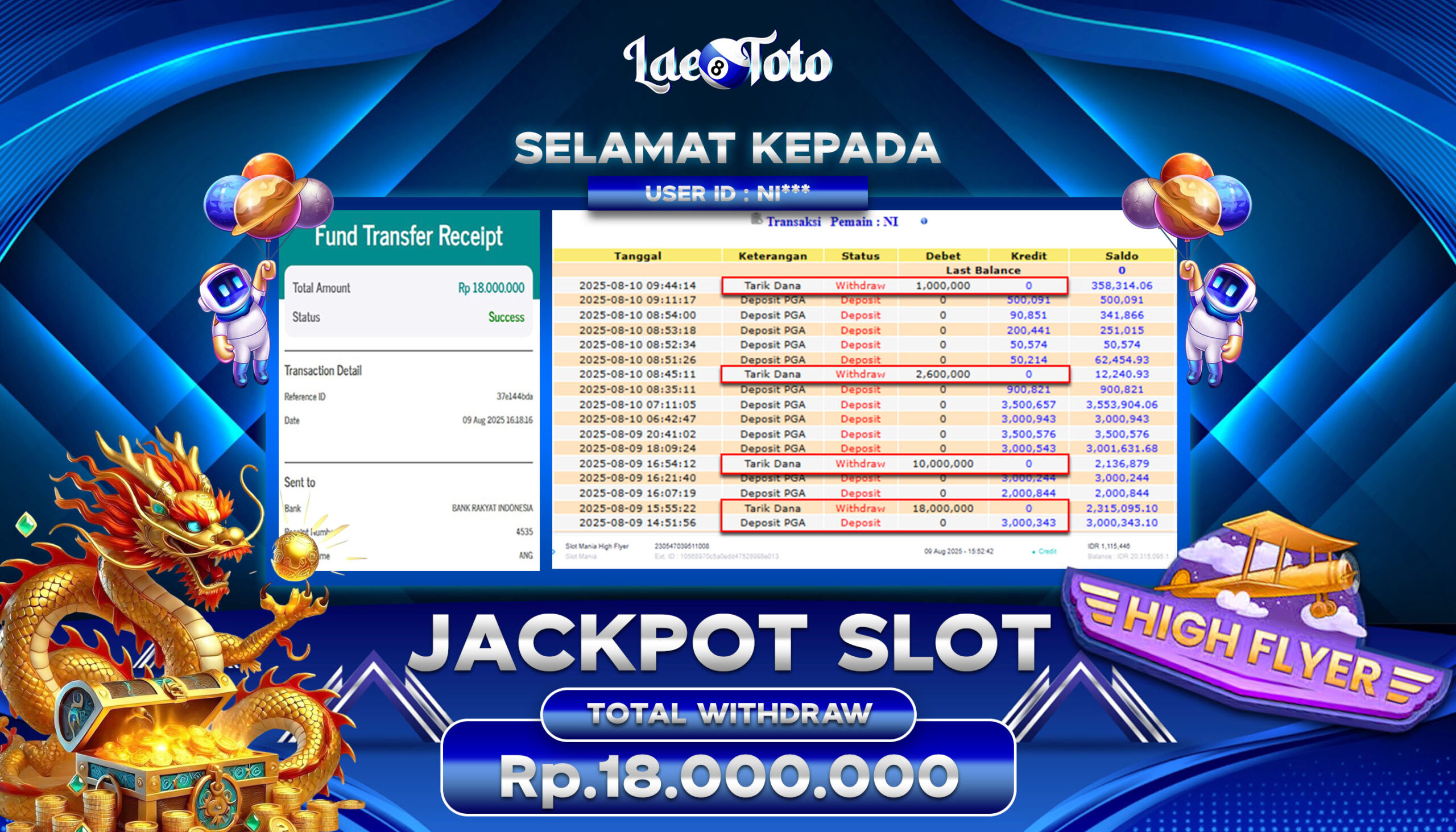 LAETOTO BUKTI JACKPOT MEMBER SLOT HIGH FLYER RP 18.000.000 DIBAYAR LUNAS !!