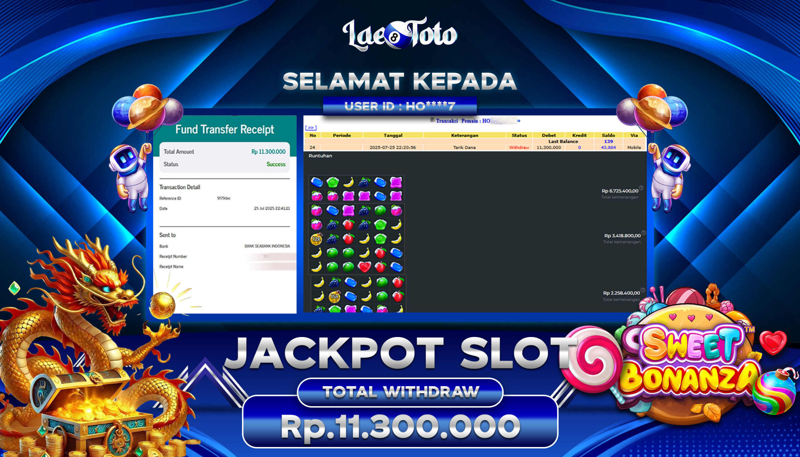 Selamat kepada Member User ID : HO****7 yang telah berhasil meraih kemenangan besar pada permainan SWEET BONANZA di Pragmatic Play dengan total hadiah sebesar RP 11.500.000 DIBAYAR – LUNAS!! Setelah mengisi formulir penarikan dalam waktu kurang lebih 5 – 10 menit, pihak LAETOTO telah melakukan transfer kepada pemenang. Saldo dengan User ID tersebut sudah dicairkan oleh pemenang. Bukti pembayaran yang kami berikan adalah SAH/VALID, yang dibuktikan melalui tanda transfer transaksi dari bank tujuan.